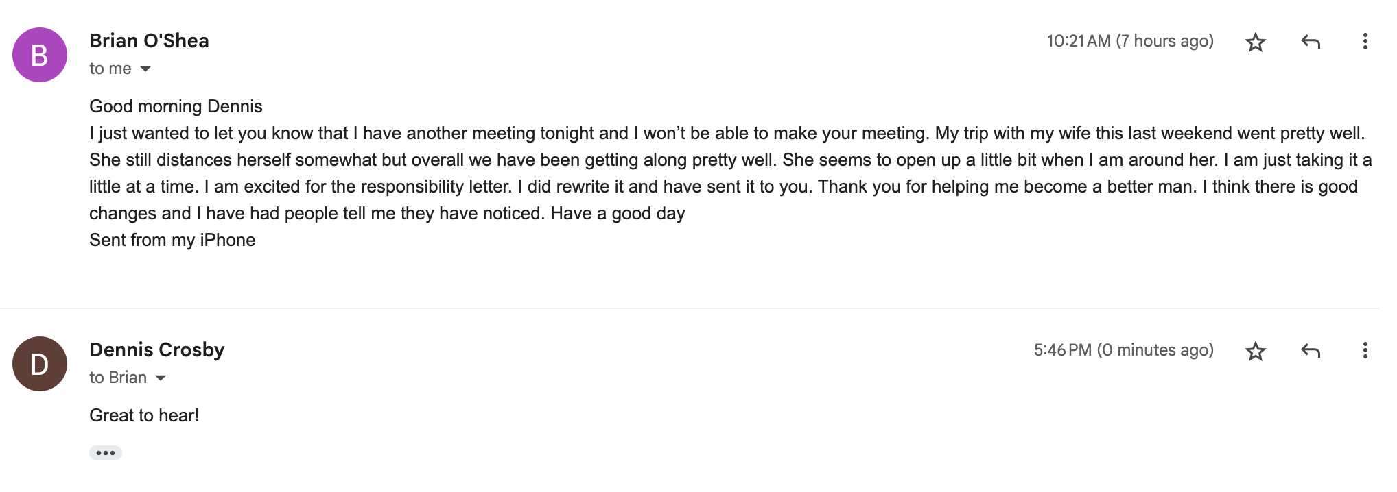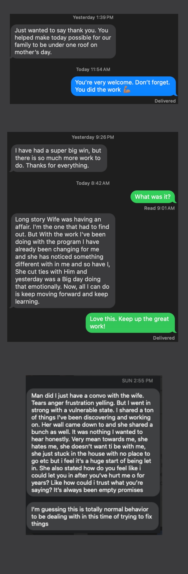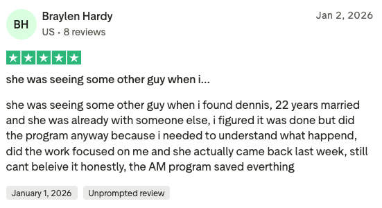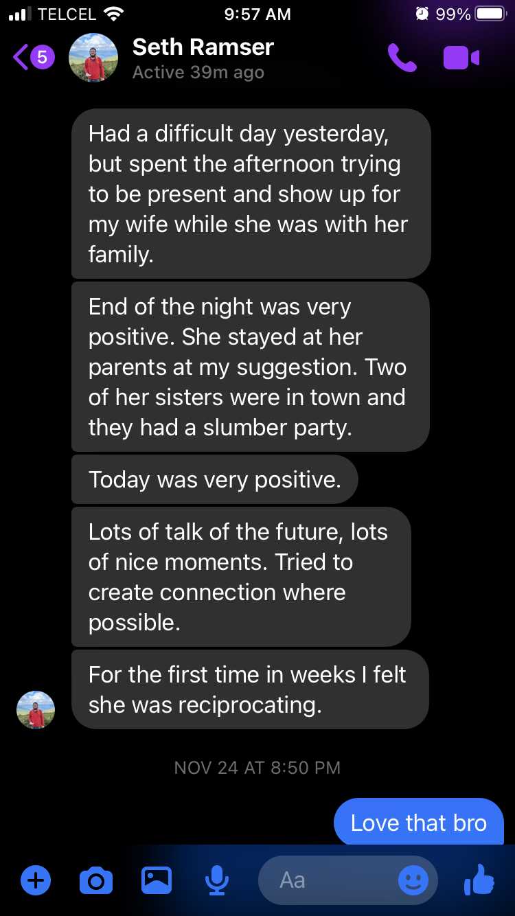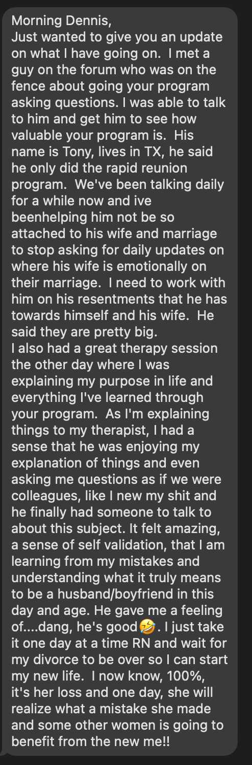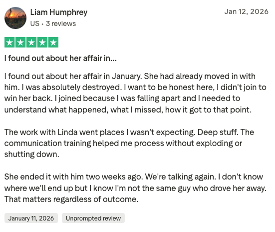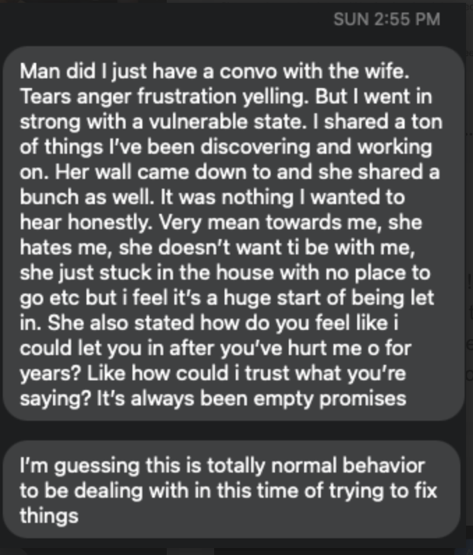 - Situation: Separated, emotional affair (him)
