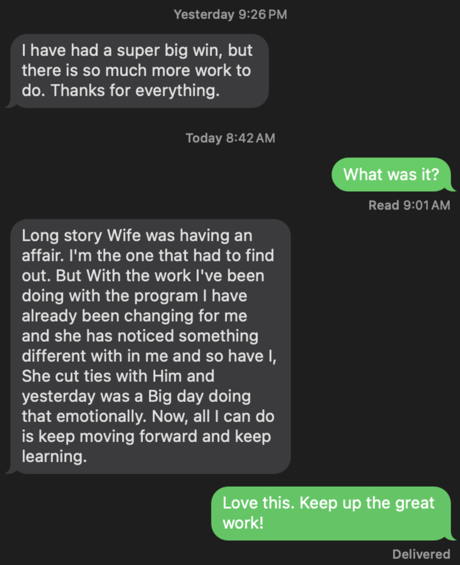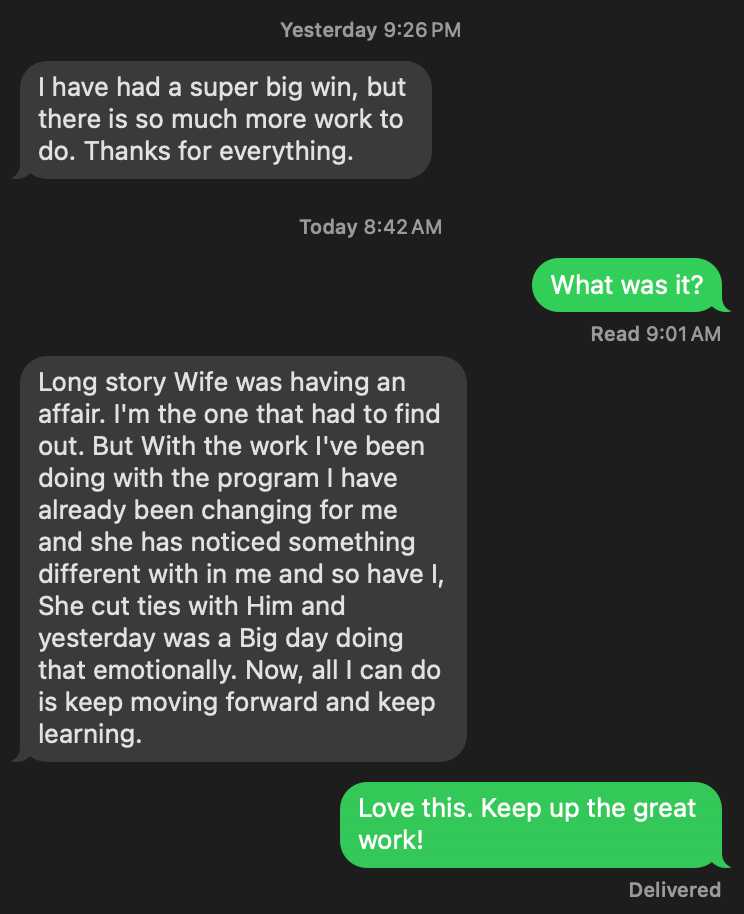 - Situation: Physical affair (wife)