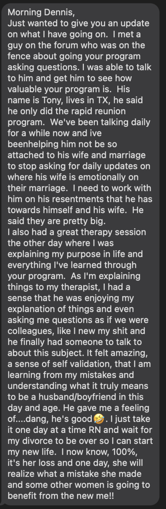 Time To 2nd Chance: Became the man he wanted to be, didn’t reconcile