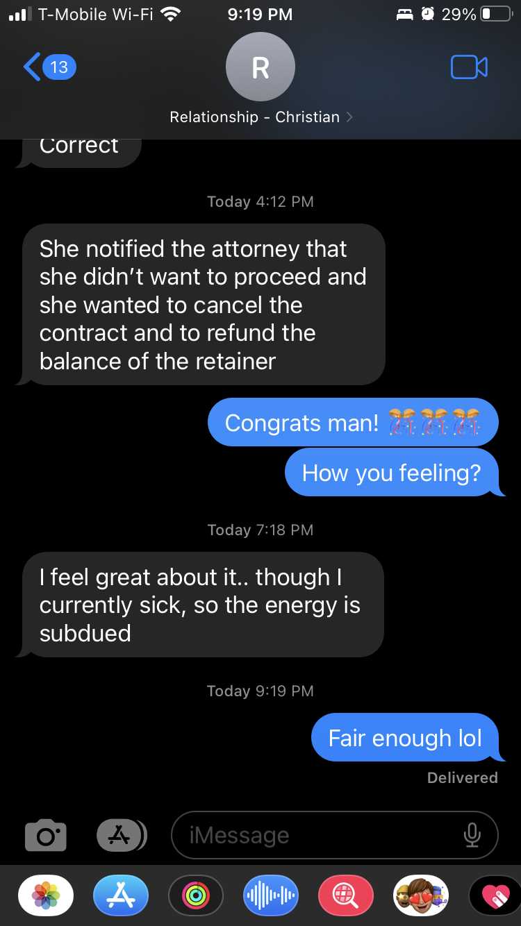 - Situation: Separated, discussing lawyers