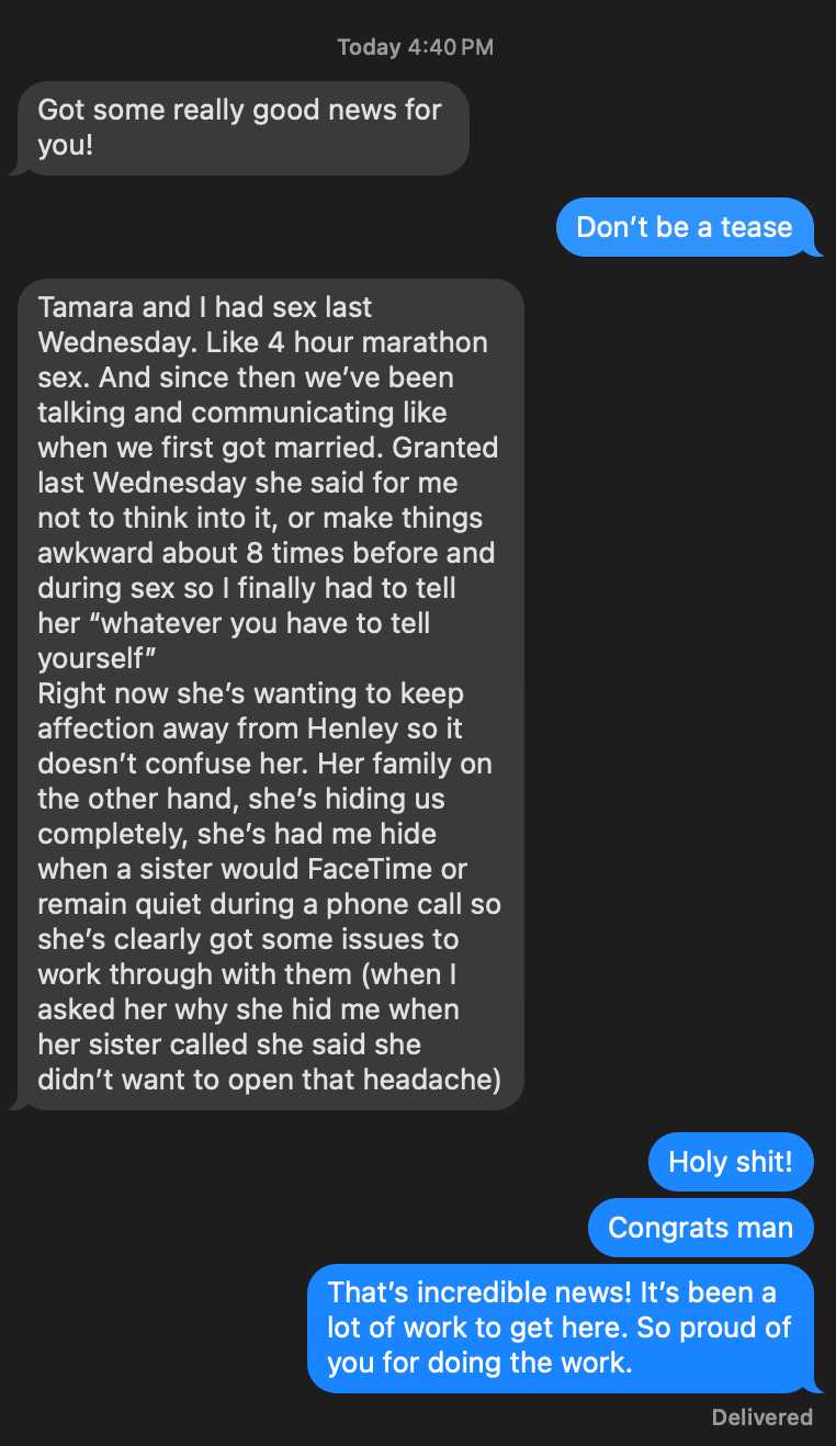 - Situation: No intimacy for years