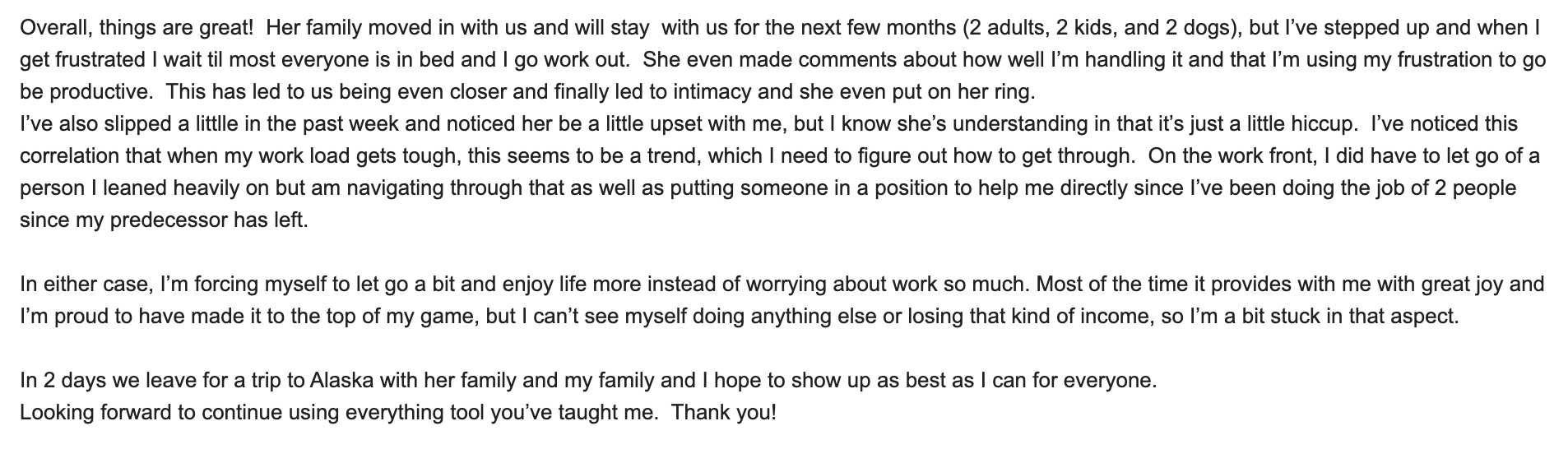 - Biggest Problems: Arguments, emotional reactivity, not knowing how to show up